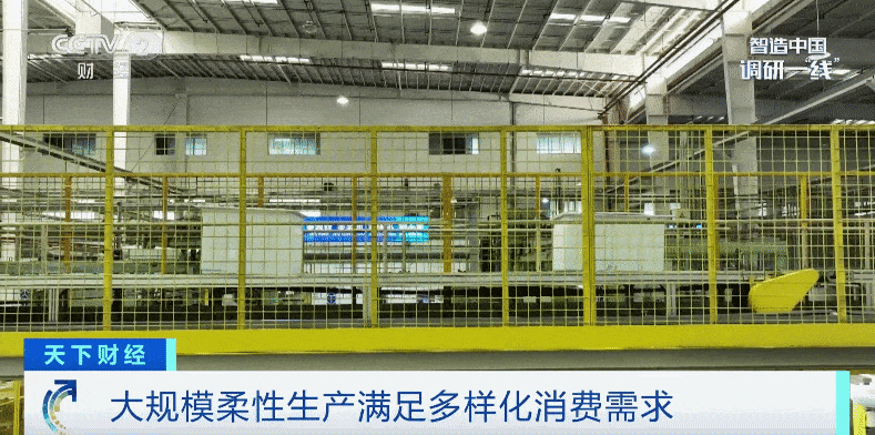 在一條距離地面4米多高的傳送帶上,剛剛完成生產的冰箱內膽正在進入半成品倉庫。內膽的大小、型號各異,這并不是生產過程中出現了問題,而恰恰是這座78000平方米智能工廠大規模柔性生產能力的體現。
